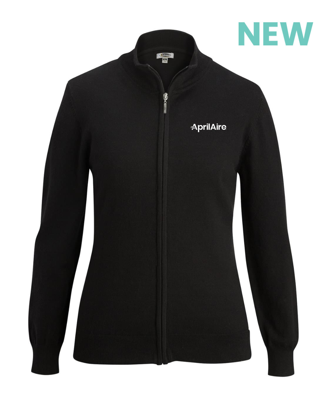 Our ladies' full zip cardigan has a flattering silhouette with a smooth and easy drape. A clever blend of lightweight Cotton/Acrylic gives you ultimate comfort. The stand-up collar provides a new look to a traditional cardigan. Wear it over a blouse or tee. Decorates well.